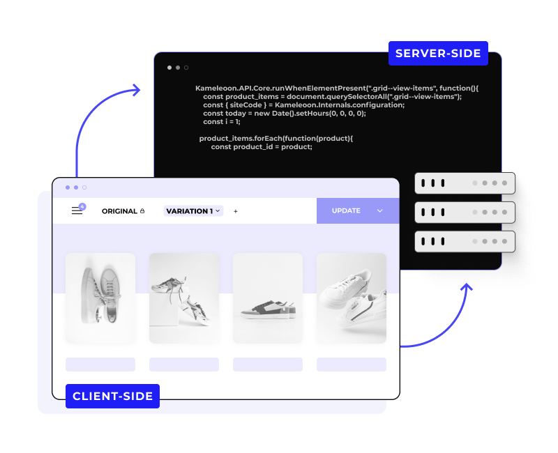 Since server-side tests render variants directly from the back-end server, it also allows you to test more complex, dynamic content beyond the scope of the user interface of a “static” website. This could include pricing and shipping costs on an e-commerce site generated on the server via a database rather than on the front-end.