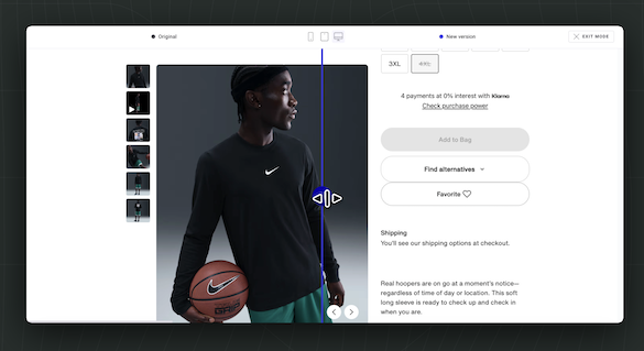 Generate, build, and run experiments on any site or product interface by prompting the AI, with visual and code-ready output.