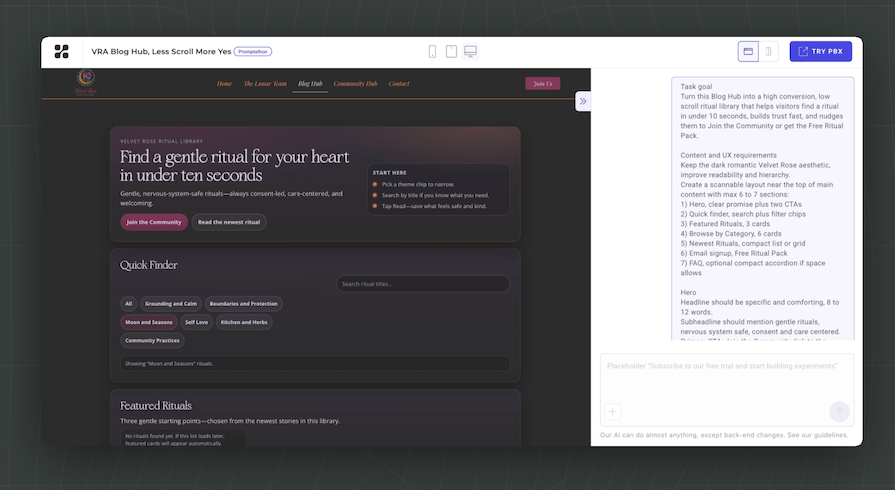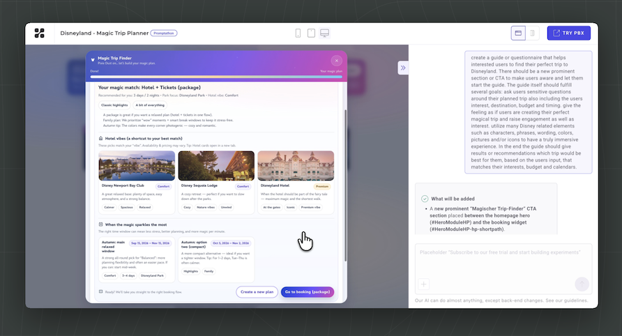 Generate, build, and run experiments on any site or product interface by prompting the AI, with visual and code-ready output.