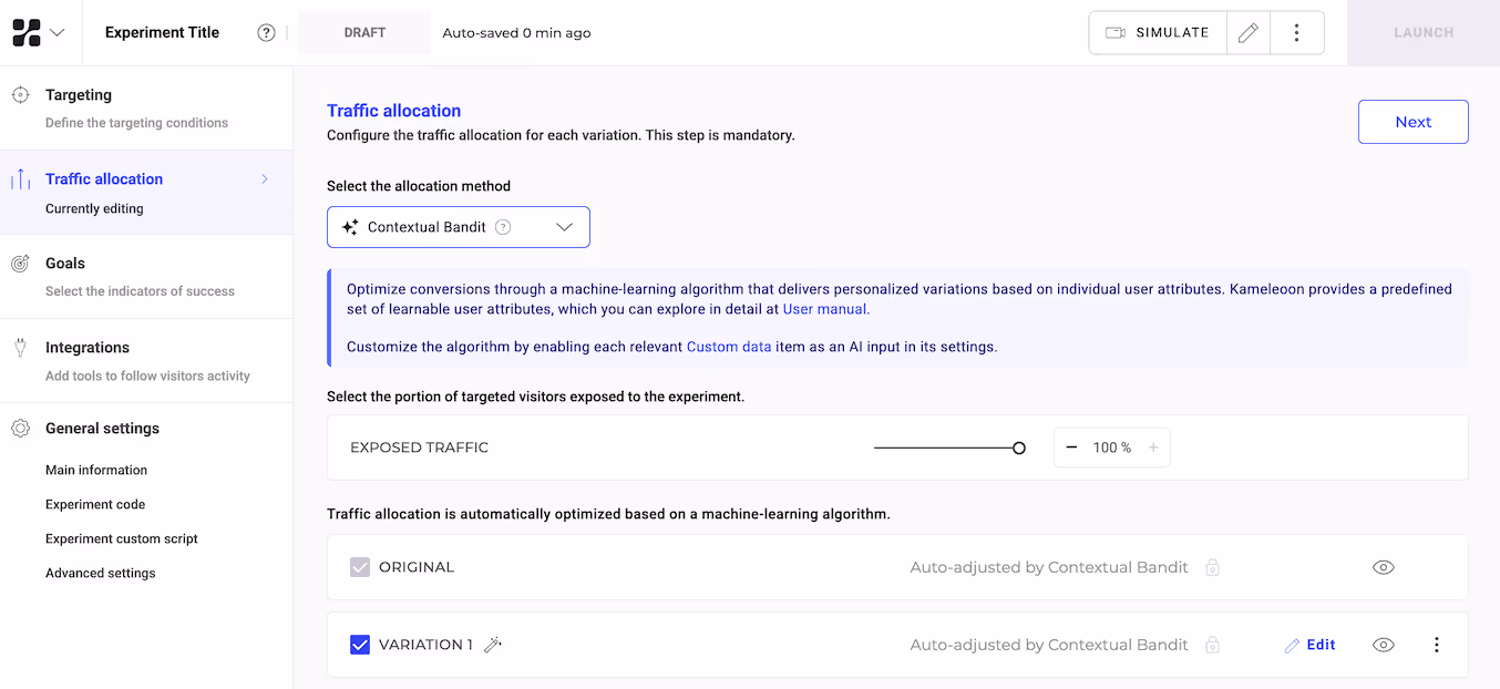 Enabling contextual bandits in Kameleoon is simple: