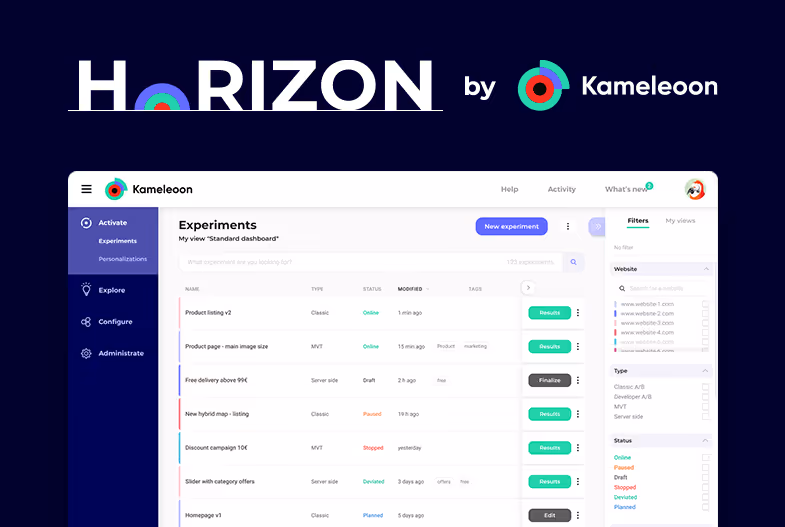 Today, we’re releasing a brand new UX for Kameleoon called HORIZON, along with many new features.