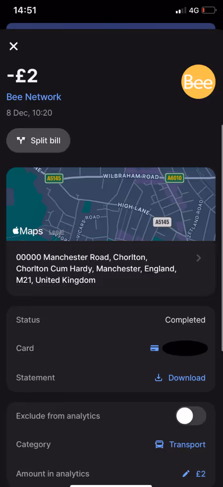 Not only is Revolut quick on notification, but it also provides additional information on transactions, including the company logo, name, and the location of the business on a map. In the past, I panicked when I couldn't recognize a business name, but the additional information helped me determine if the payment was genuine.