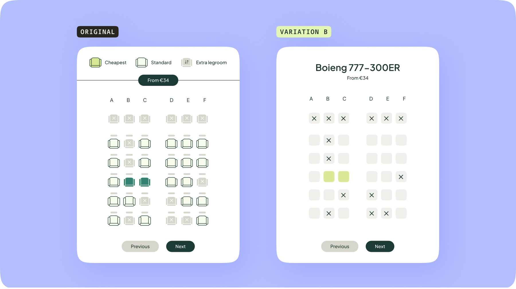 Seat selection is a critical step in the booking journey. A redesigned seat map initially led to a drop in engagement and bookings. Using Kameleoon, the team tested different layouts, interactive cues, and pricing displays, targeting variations by user behaviour and market. Variations loaded smoothly, allowing reliable measurement. This helped the team identify the most intuitive layout, improve usability, and increase completed bookings.