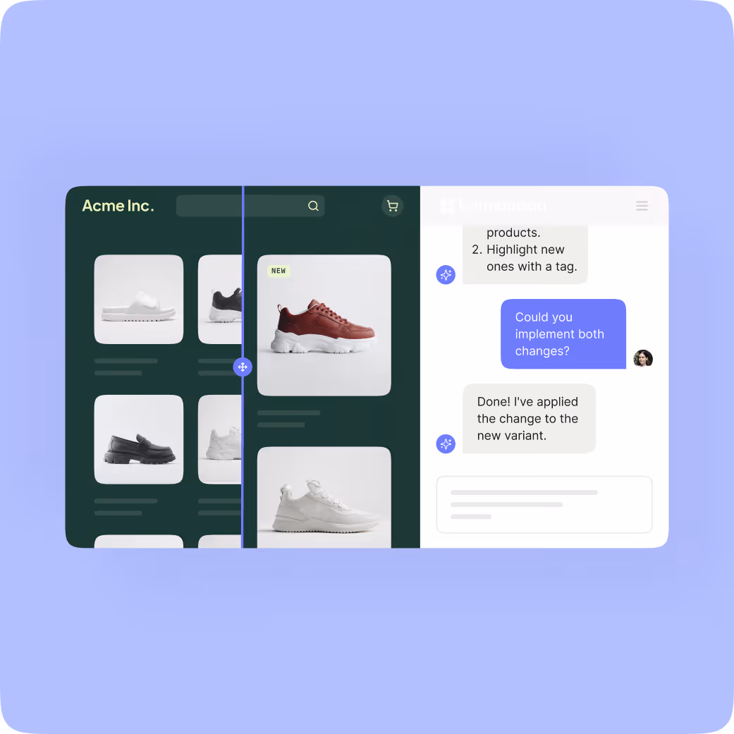 Generate variations faster, streamline your workflows, and launch more tests without increasing technical complexity.