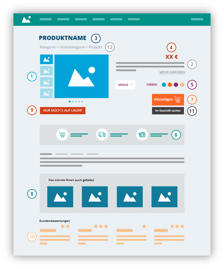Die Produktseite enthält alle Informationen und Merkmale eines Produkts und hilft dem Besucher, eine informierte Kaufentscheidung zu treffen.