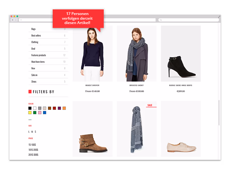 Social Proof ist ein wichtiger Faktor im Conversion-Prozess. Die Beliebtheit eines Produktes bei anderen Kunden kann klar in die Kaufentscheidung hineinspielen. Mehrere Arten von Botschaften sind möglich: