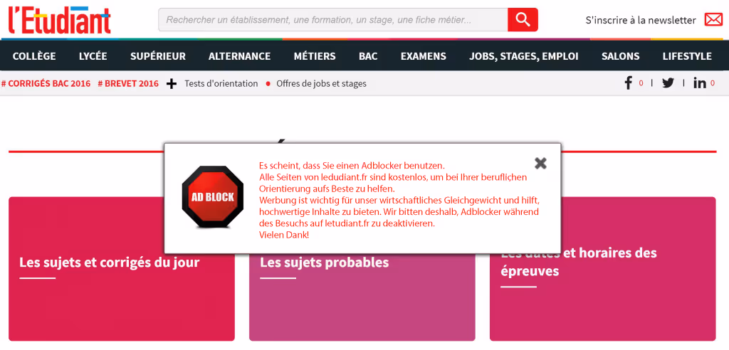 a. Adblocker-Deaktivierung: Beispiel L’Etudiant