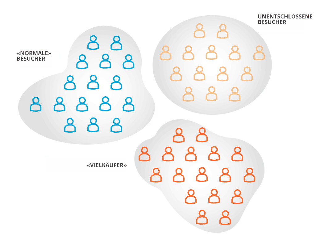 Diese Gemeinsamkeiten bestehen nicht aus einzelnen, starren Kriterien wie Alter oder Interessen, sondern aus einer Kombination verschiedener Datenquellen — zum Beispiel On-Site-Verhalten, vorhandene Kundendaten und Umfrageergebnisse. So entstehen Gruppen, die inhaltlich deutlich mehr gemeinsam haben und dadurch präziser ansprechbar sind.