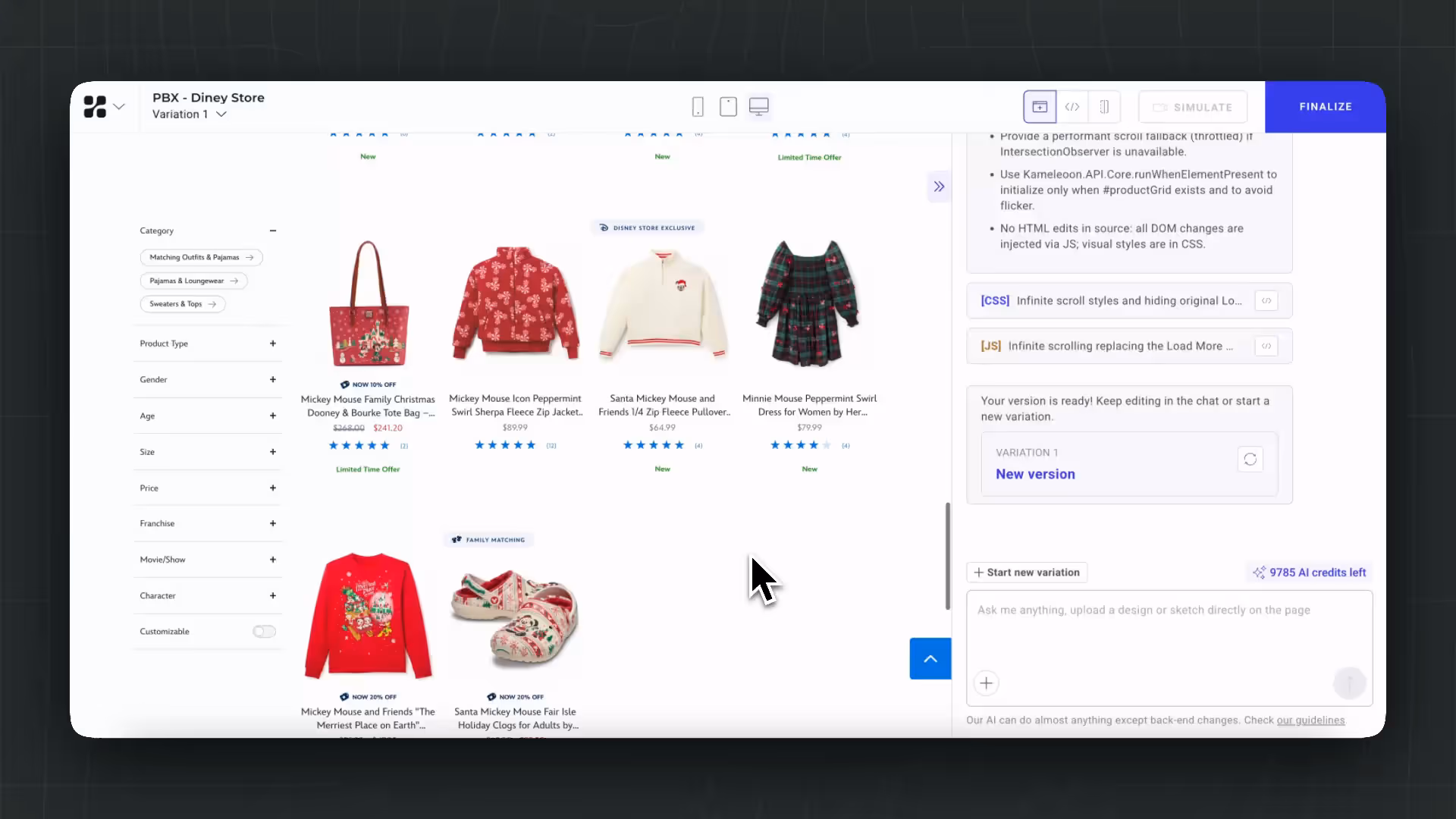 Formuliere deine Idee in natürlicher Sprache und starte dein Experiment sofort. Egal ob Copy oder Layout, alles ist möglich.