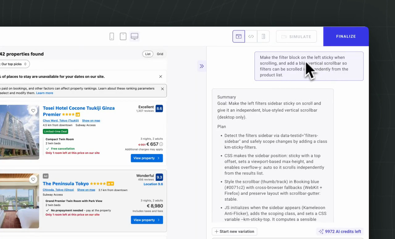 Erstelle Experimente für jede Website oder jedes Produkt-Interface – per AI-Prompt, mit visuellem und code-ready Output.