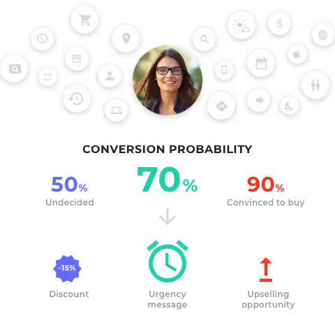 - 1-to-1 approach: your actions are personalized based on how each visitor’s probability of conversion evolves.