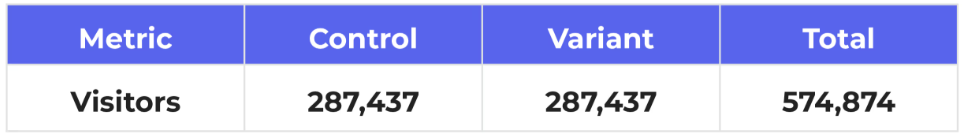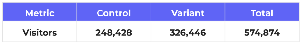 Because it’s a standard A/B test, traffic is intentionally allocated 50/50. Based on that setup, the sample should be evenly split like this: