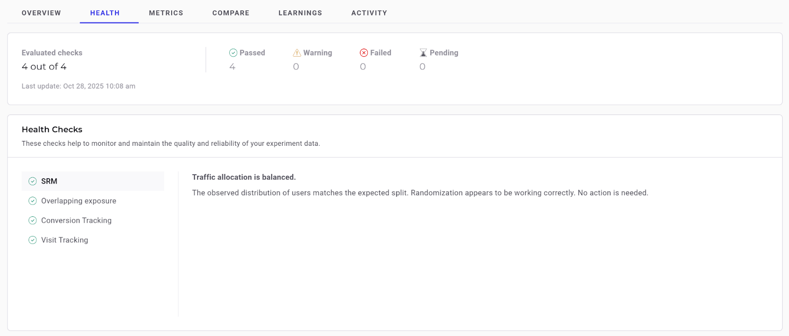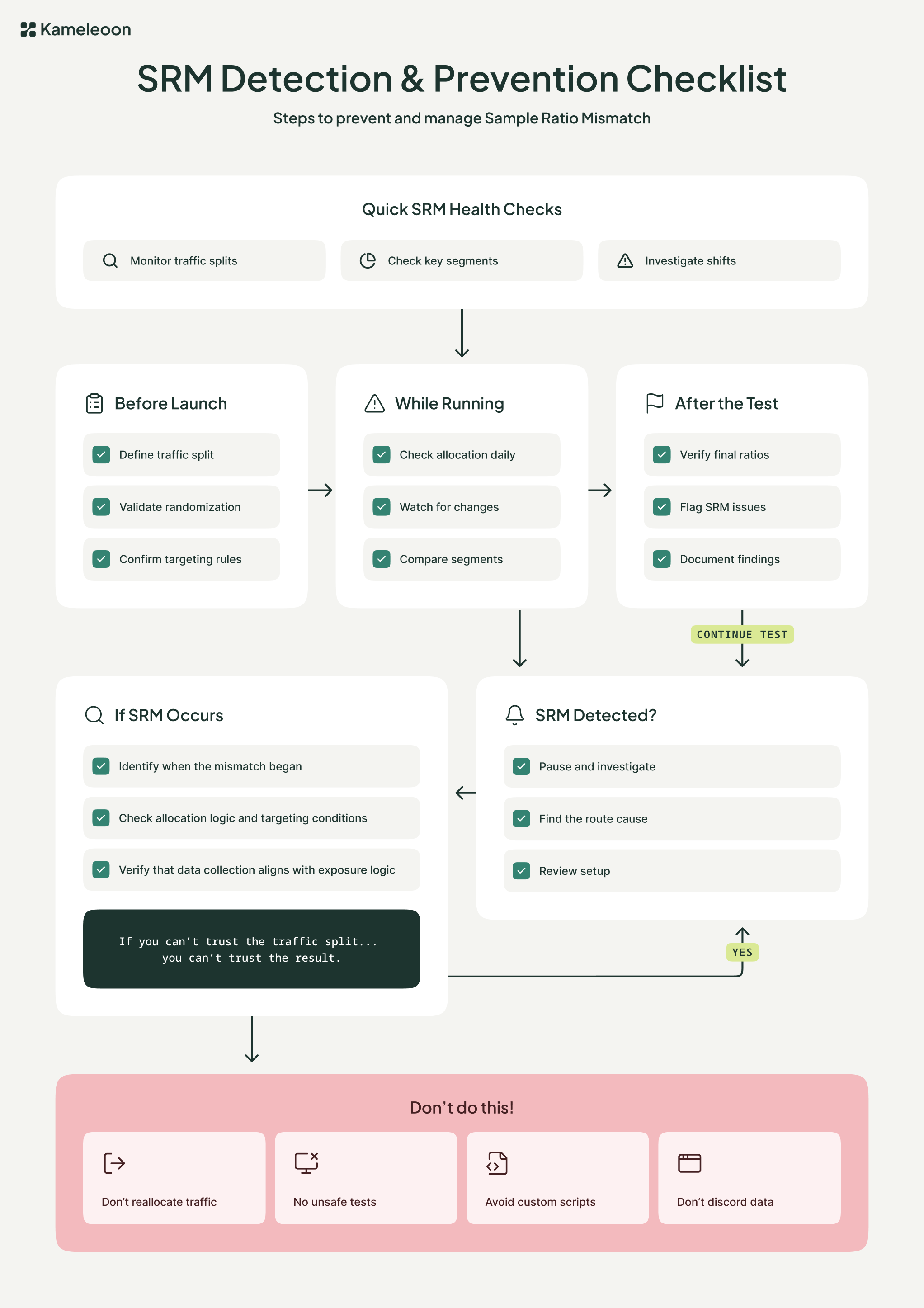 These check points act as important guardrails to help ensure your test doesn't fall victim to SRM.