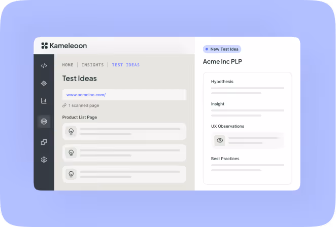 Décrivez votre idée en language naturel. L'IA de Kameleoon (PBX) génère et lance vos tests instantanément.