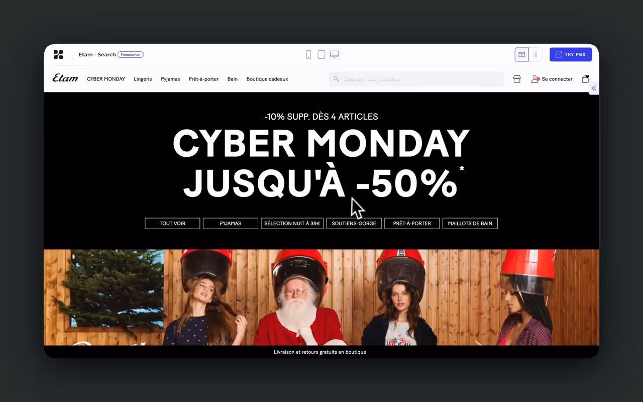 Use your free Kameleoon account and prompt the AI to transform any website into what you think is an optimized version of its current self.