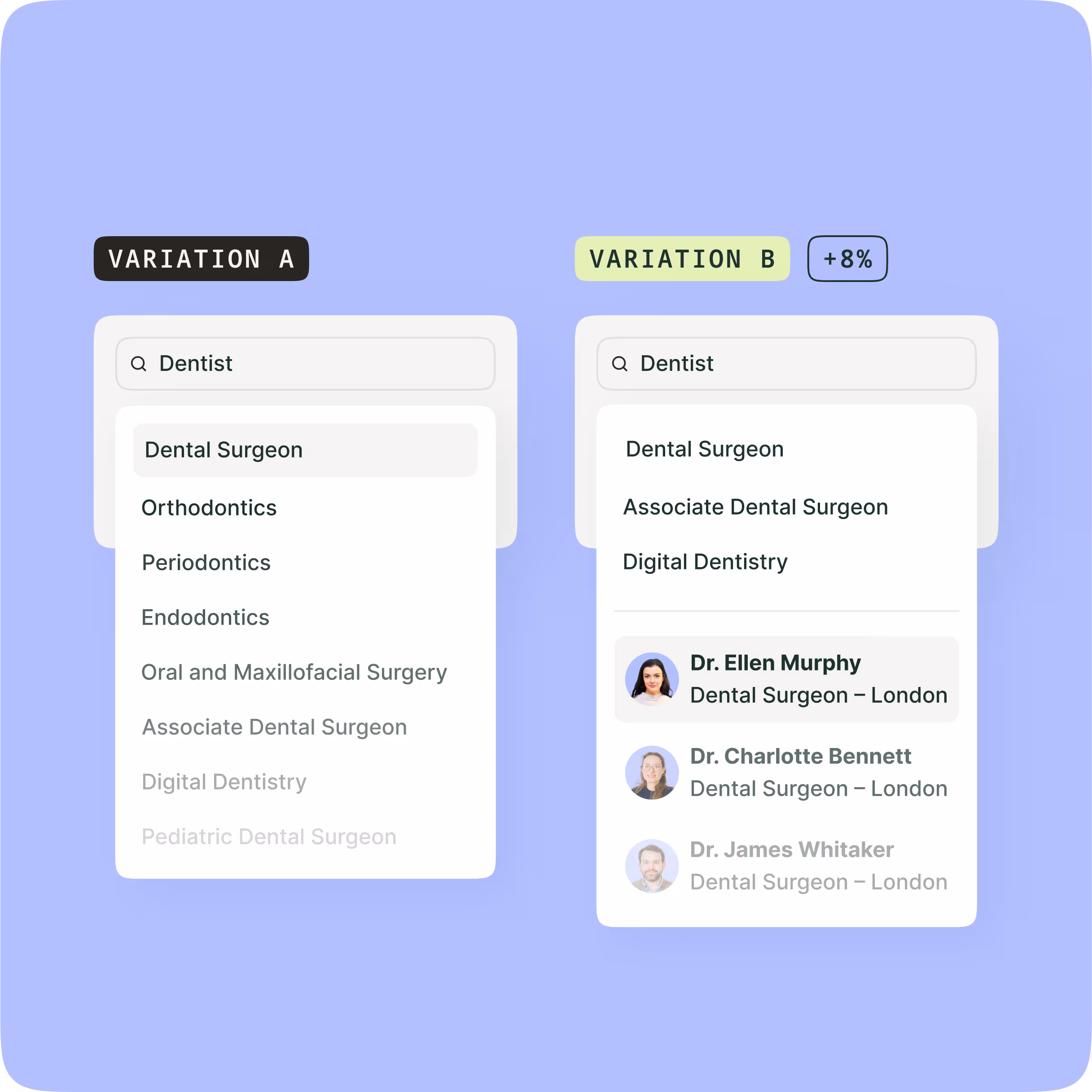Try different scheduling flows, default selections, and entry points to optimize for conversions.