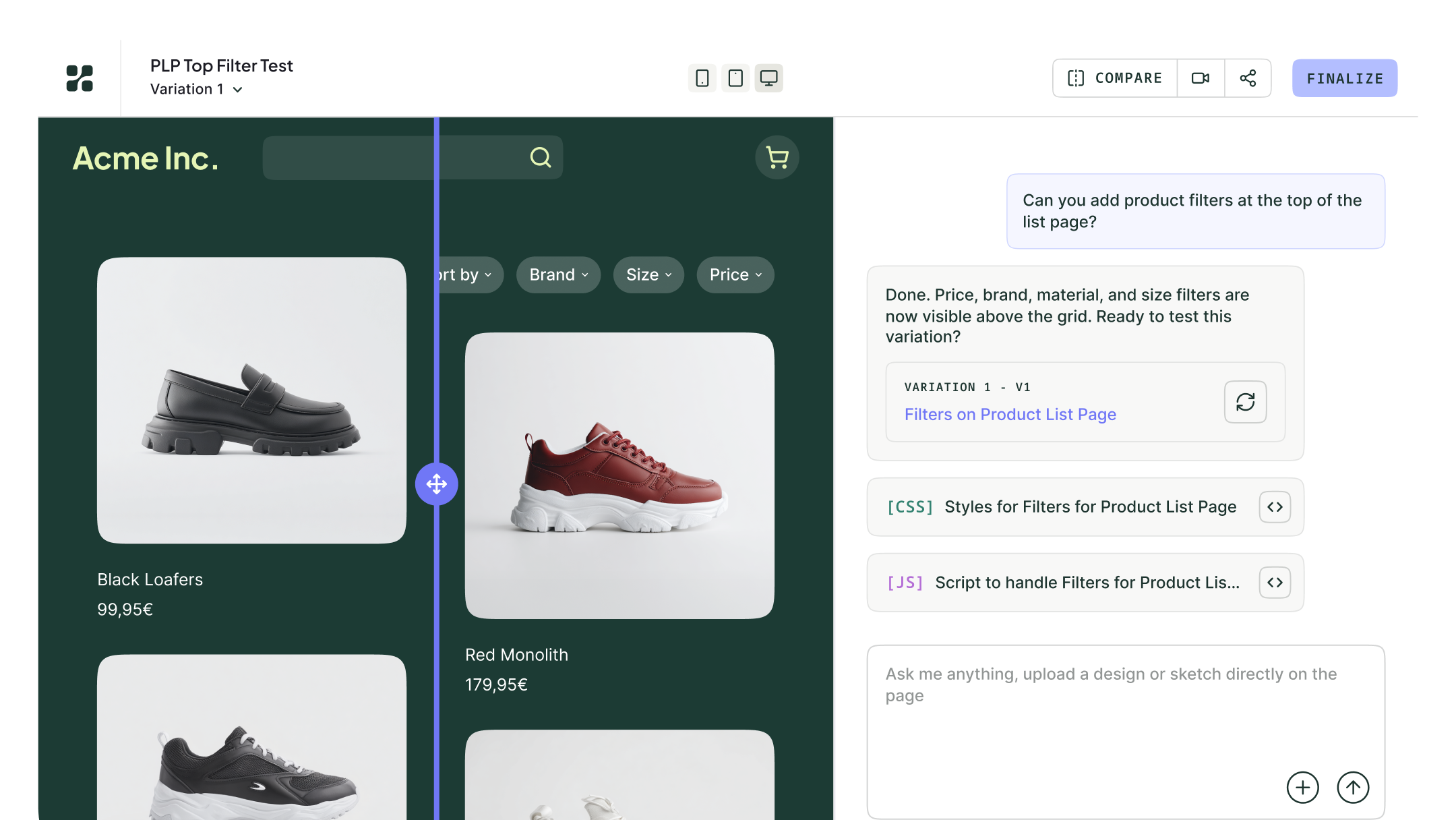 Import your Figma mockup and let PBX generate a variation that stays true to your brand, layout, and design system.
