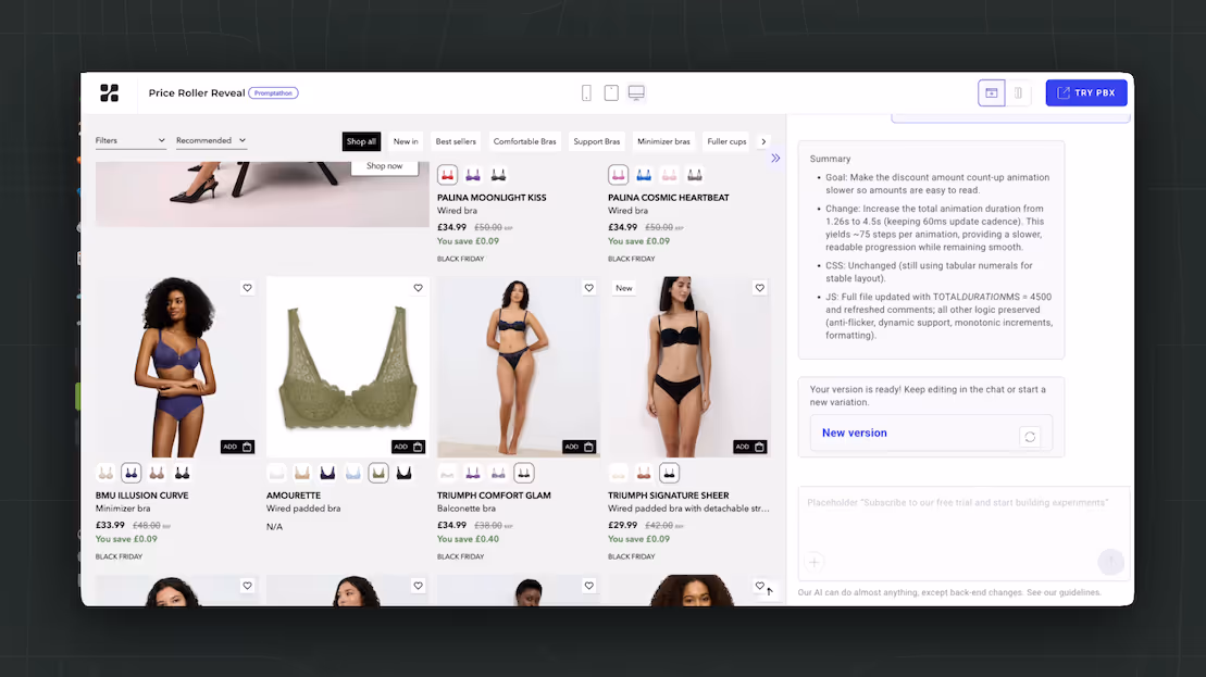 No. PBX helps you create test-ready experiment versions by chatting with AI, but it’s not a replacement for your design or CMS tools. You can still upload a mockup to improve output quality, and a Figma integration is planned for later in Q1 2026.