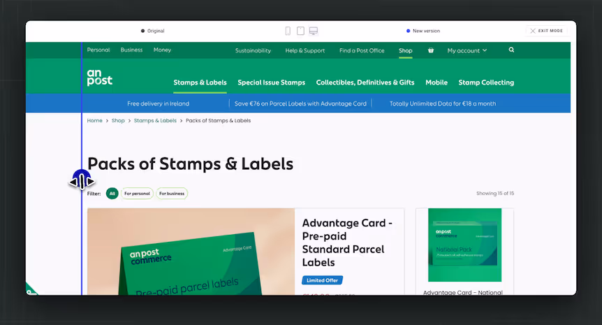 We know that the majority of users who are browsing the Stamps & Labels products can be categorized into personal mailers, business mailers, or stamp collectors. We want users to be able to easily filter between products based on these archetypes.