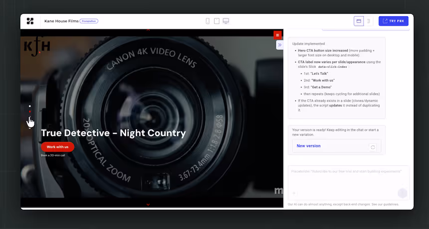 No. PBX helps you create test-ready experiment versions by chatting with AI, but it’s not a replacement for your design or CMS tools. You can still upload a mockup to improve output quality, and a Figma integration is planned for later in Q1 2026.
