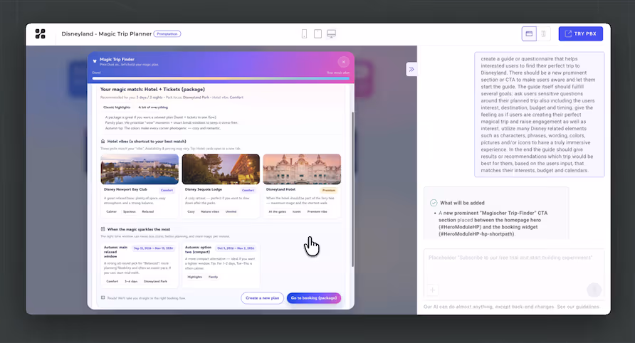 Try Prompt-Based Experimentation (PBX) with our 30-day free trial and see how fast testing can be.